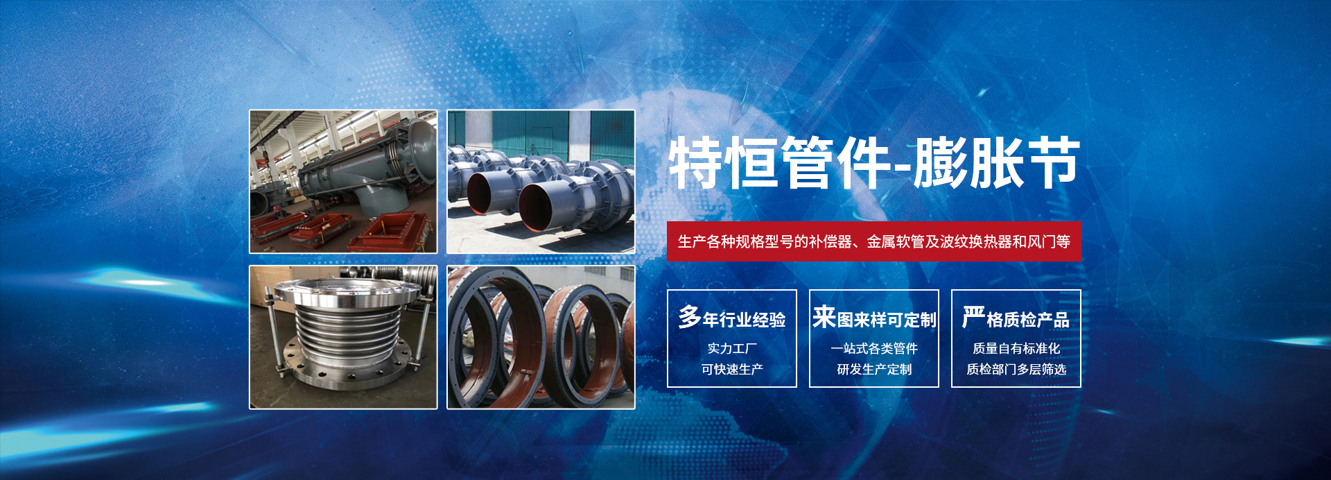 泰州市特恒管件有限公司坐落于風(fēng)景如畫的江蘇省泰州市,是專業(yè)從事設(shè)計(jì)、生產(chǎn)金屬、非金屬膨脹節(jié)、橡膠補(bǔ)償器、不銹鋼金屬軟管、風(fēng)門等的廠家。公司擁有各種先進(jìn)生產(chǎn)、加工、檢測設(shè)備和強(qiáng)大的技術(shù)力量支持。我公司根據(jù)國內(nèi)先進(jìn)的加工成型工藝、科學(xué)的管理體制、先進(jìn)的工裝設(shè)備不斷充實(shí)、完善質(zhì)量保證體系,從而創(chuàng)造出高品質(zhì)的產(chǎn)品。聚科技精英、出優(yōu)質(zhì)精品、品質(zhì)卓越、信譽(yù)至上是我們的不懈追求。我公司愿以可靠的質(zhì)量和良好的信譽(yù),“誠信、公正、求實(shí)、創(chuàng)新”的經(jīng)營理念與廣大用戶攜手合作,共創(chuàng)美好未來。我公司采用先進(jìn)的標(biāo)準(zhǔn)進(jìn)行設(shè)計(jì)、生產(chǎn)各種規(guī)格型號(hào)的補(bǔ)償器、金屬軟管及波紋換熱器和風(fēng)門等。廣泛應(yīng)用于電子、電力、核電、石化、冶金、儀表、儀器、航天、航 空、船舶、碼頭、建筑、食品、供熱等行業(yè),曾先后為多家大型企業(yè)提供各種型號(hào)的優(yōu)質(zhì)補(bǔ)償器,產(chǎn)品遠(yuǎn)銷國內(nèi)外。我公司擁有一批專業(yè)技術(shù)人員和優(yōu)秀的售后服務(wù)人員,以確??蛻粼谶x型號(hào)以及客戶在產(chǎn)品安裝、運(yùn)行中出現(xiàn)問題時(shí)可以得到及時(shí)、專業(yè)、有效的處理,并為客戶在設(shè)計(jì)、安裝、運(yùn)行中提供專業(yè)的技術(shù)指導(dǎo)。